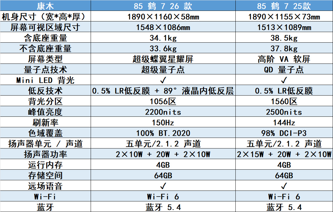 相比OLED,它的优势不仅是观感上的升级,更有长期使用的安心与高性价比,极致的高亮表现,让HDR内容的呈现更具冲击力,不管是蓝光原盘里的光影细节,还是主机游戏中的高光场景,都能还原得淋漓尽致,这是OLED难以企及的优势。它也彻底解决了OLED使用寿命的痛点,最重要的也是它对钱包的友好,雷鸟85鹤7 26款,目前仍是同尺寸中最便宜的SQD-MiniLED电视。