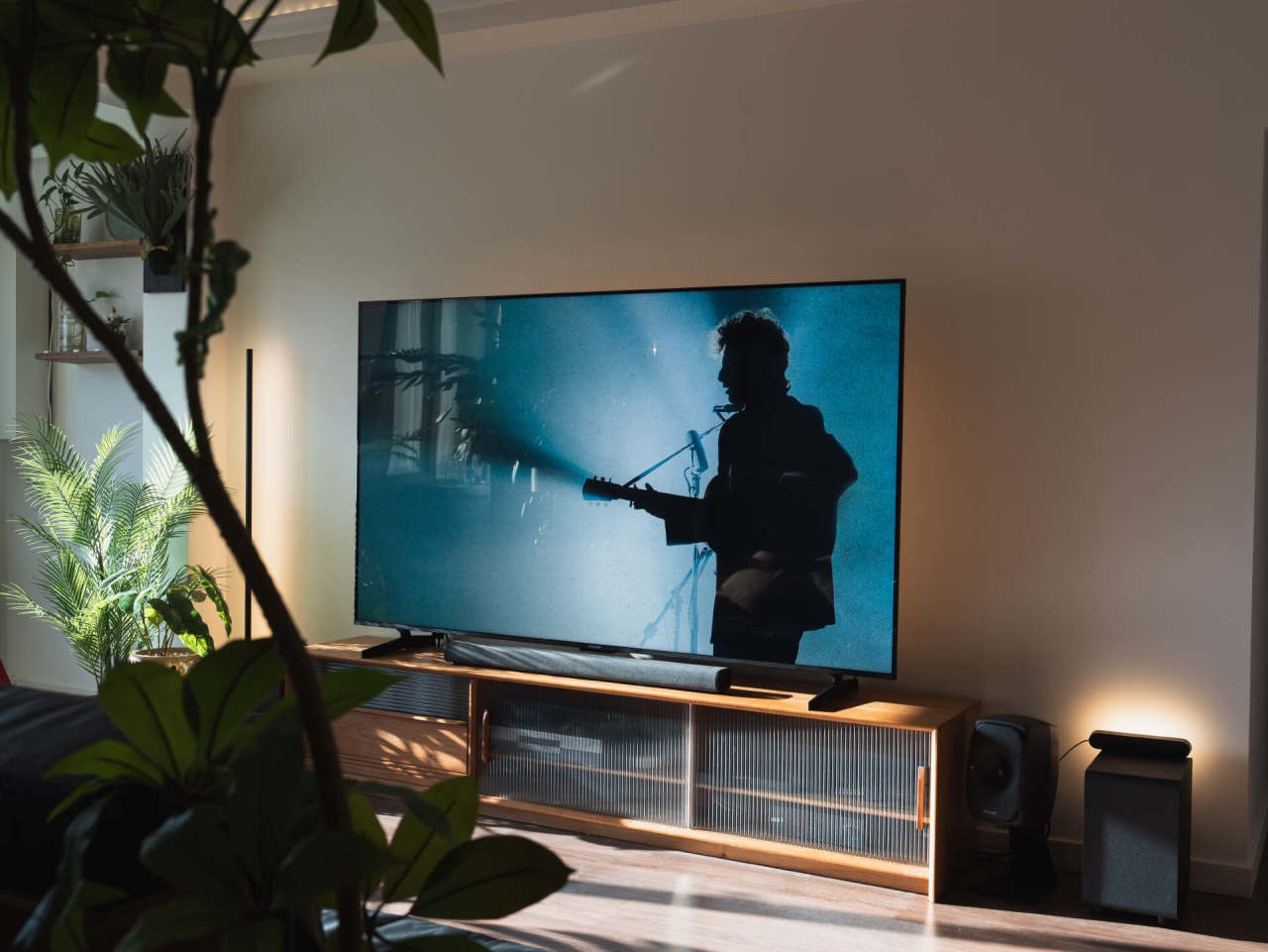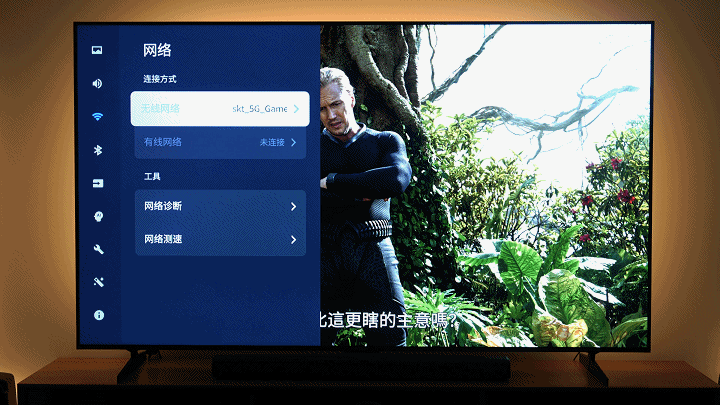 哪怕是大角度的侧面,画面依然可以看清,曾经MiniLED由于背光多,面板厚,侧面观感非常差,说到这个,不得不提这台电视的厚度,85寸做到机身最薄处仅58mm,比上一代的73mm 直接薄了近1/3,上墙也更好看了。