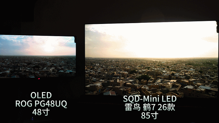 来看看我这台 雷鸟 85寸鹤7 26款和ROG PG48UQ的对比吧。