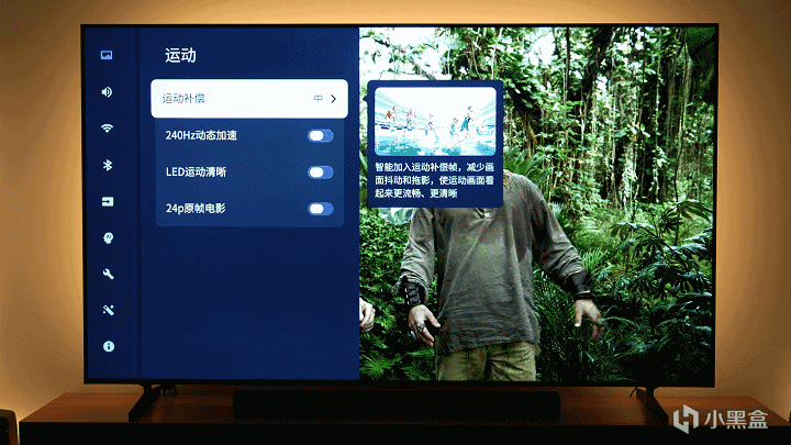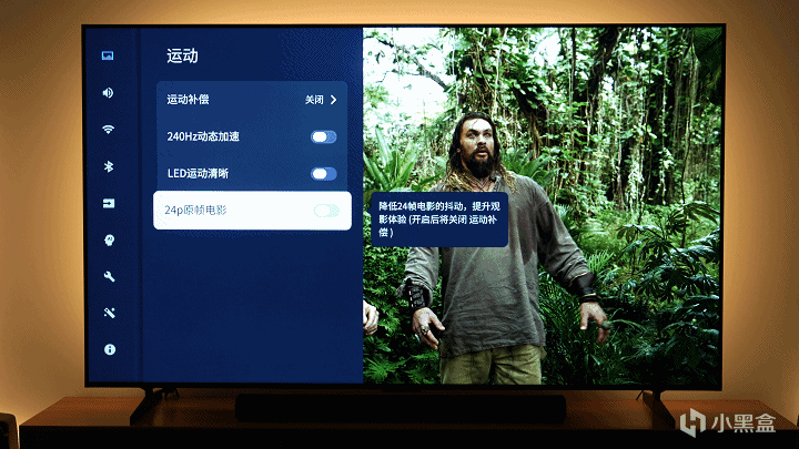 24p原帧电影建议打开,我的电视基本只看高清电影,哪怕不是杜比,也建议打开,打开这个运动补偿自动关闭。