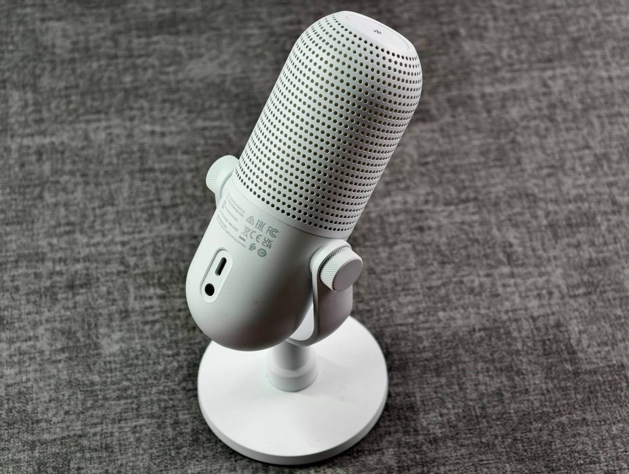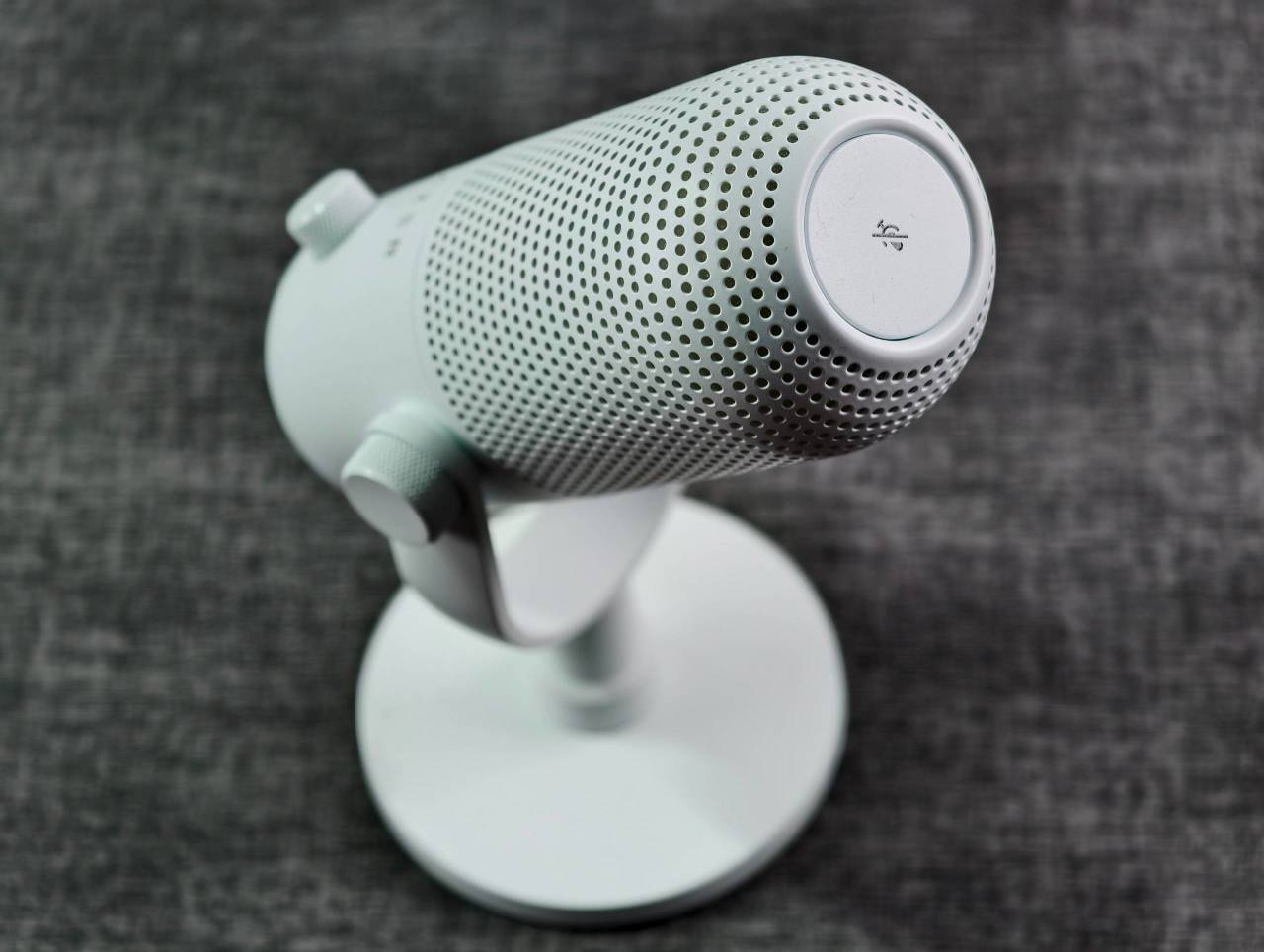 麦克风顶部配备了一块大尺寸触控板,轻触就能实现静音,还能在雷云中自定义单击、多击的快捷功能,对于直播和游戏玩家来说非常友好。