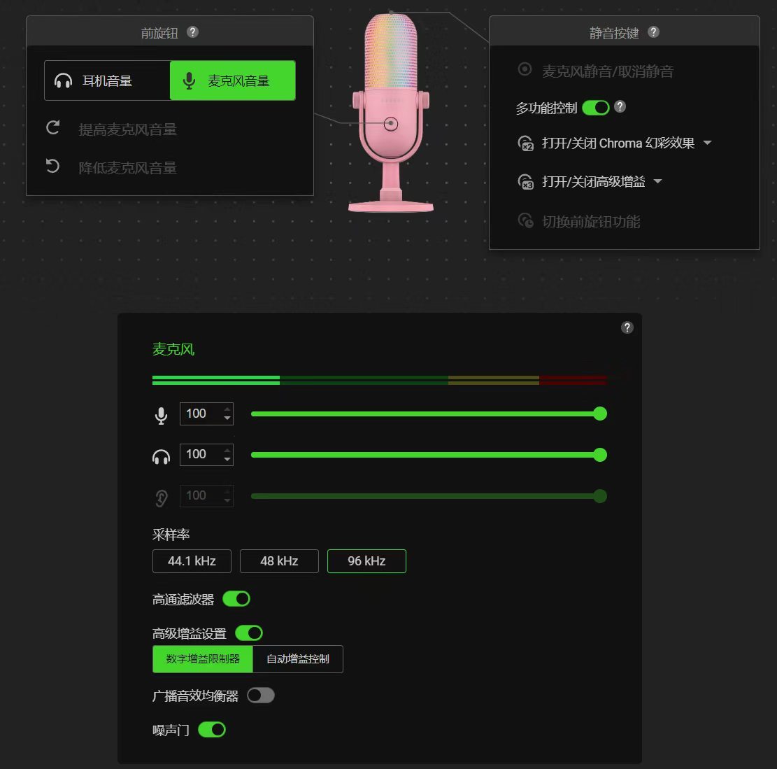 光是看雷云的灯光设置界面,就能感受到它在灯效可玩性上的功底,单论麦克风的灯光表现形式,目前市面上仅此一家。