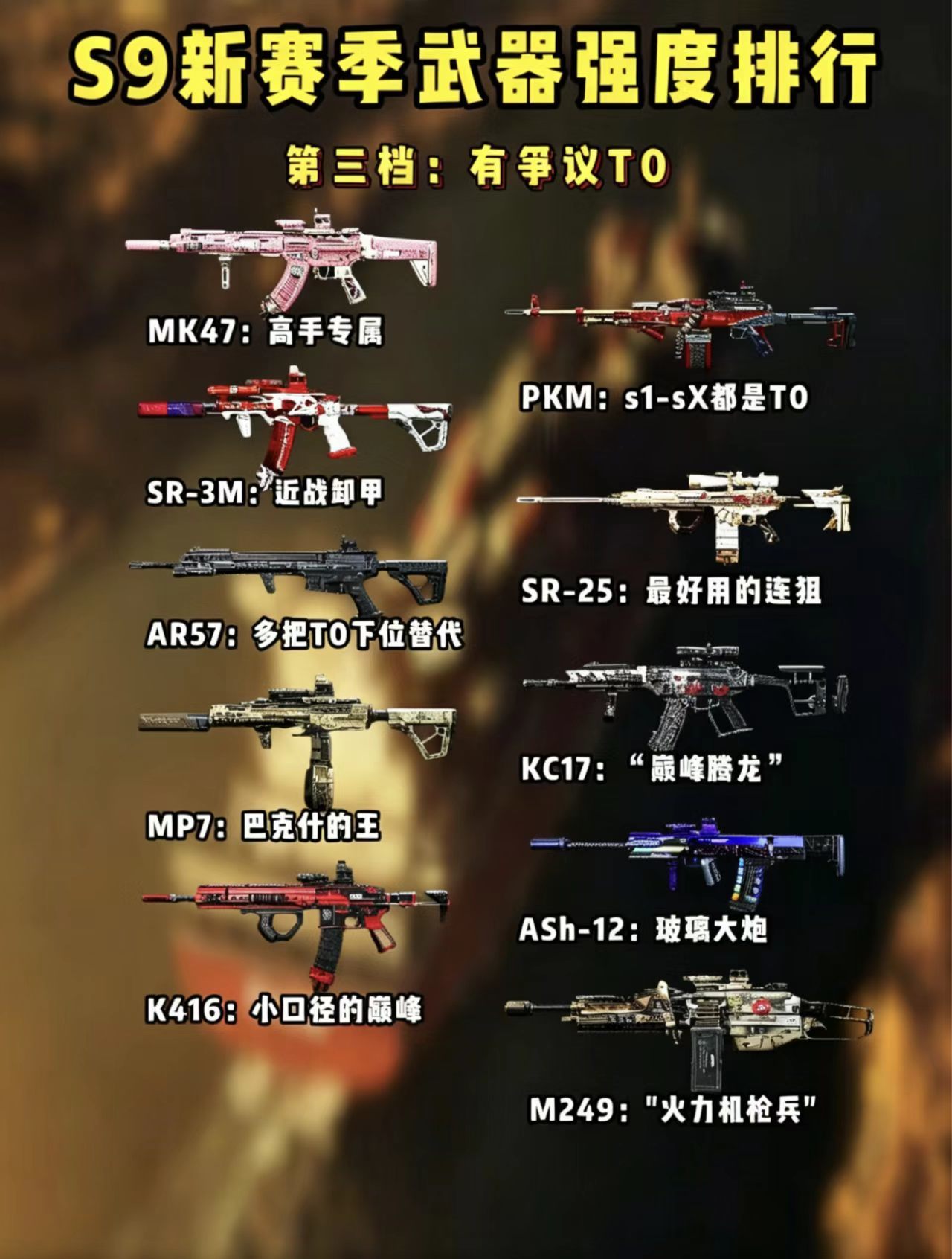 新赛季KC17,AR57,链锯M249强度很高,有望跻身T0