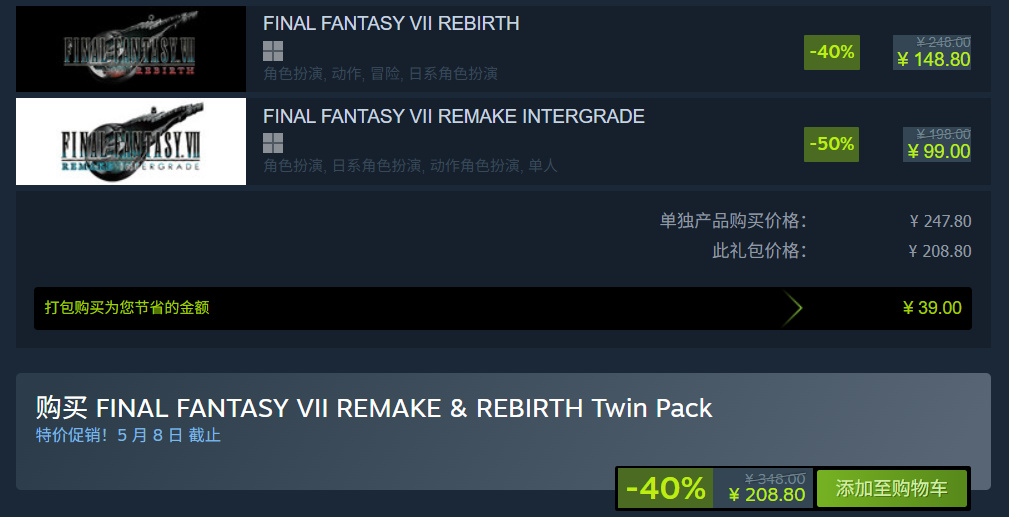 FINAL FANTASY VII REMAKE & REBIRTH Twin Pack