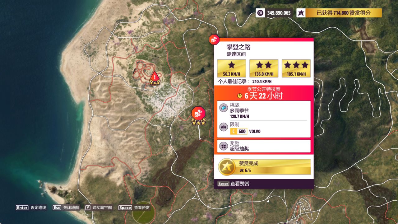 测速区间:攀登之路,完成奖励为超级抽奖(完成条件:128.7km/h)