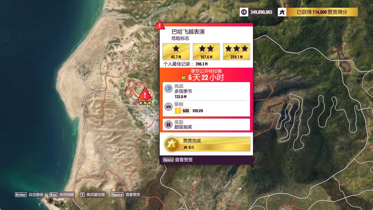 危险标志:巴哈飞越表演,完成奖励为超级抽奖(完成条件:125m)
