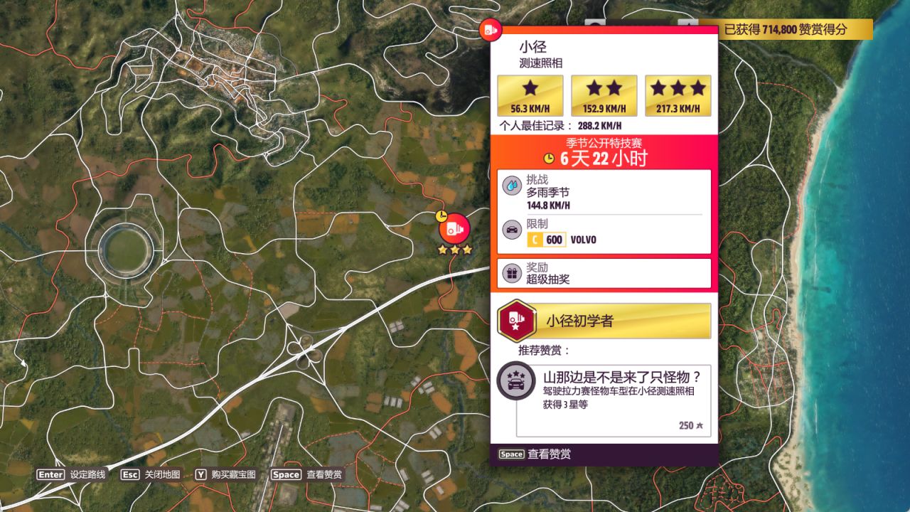 测速照相:小径,完成奖励为超级抽奖(完成条件:144.8km/h)
