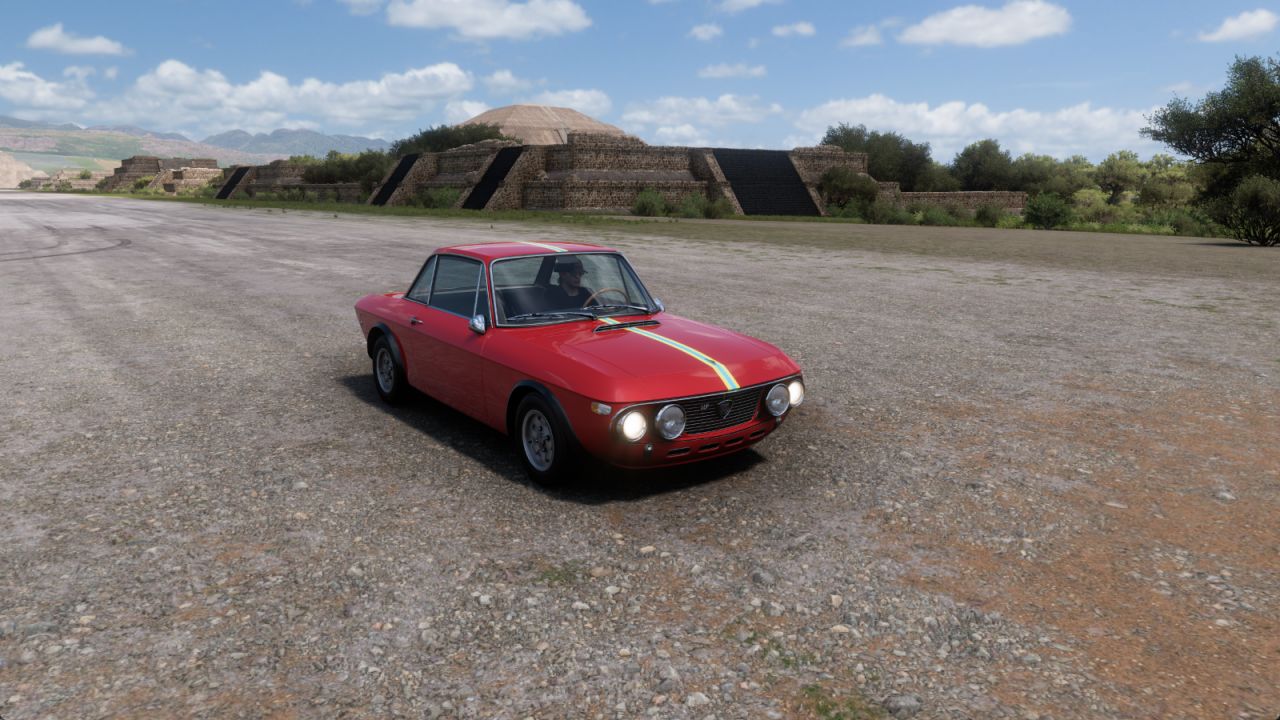 拍摄一张1968蓝旗亚 Fulvia Coupe Rallye 1.6 HF(稀有车,没有的必须做完锦标赛一才能获取车辆)的相片,完成奖励为“小鸡舞”表情奖励