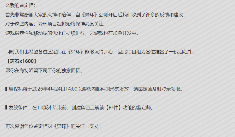 此外,項目組還爲全體玩家準備了一份海特洛啓程禮:環石×1600