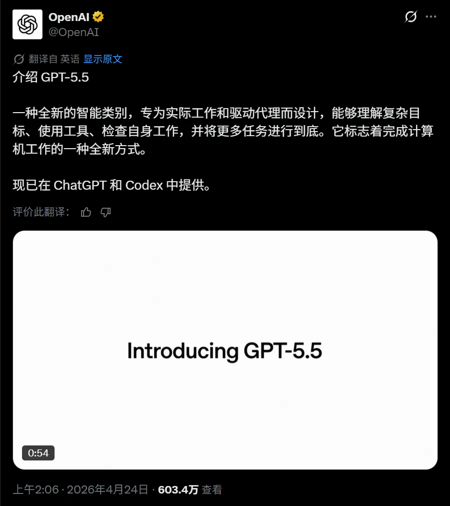 今天凌晨,OpenAI 正式推出 GPT-5.5。