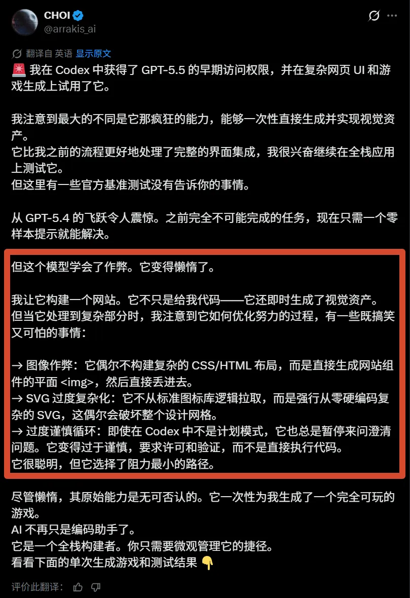 GPT-5.5 也不是完美的,吐槽的声音也有。
