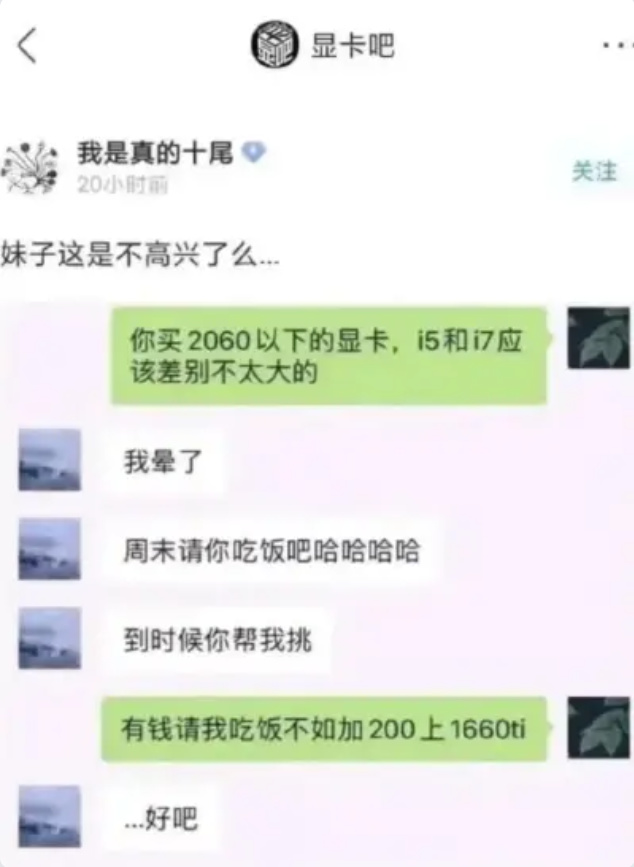5800X3D的价格接近2400,与9800X3D的最低价也只差200,这让我想起了曾经显卡吧里的装机高手的追女生焚决,只差200的话说什么都要咬咬牙上更好的,一顿饭什么的真不重要