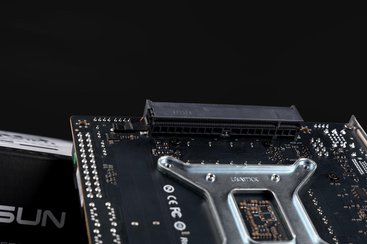 这张BKB主板的显卡插槽设计在了主板的背面,采用了主板与显卡背靠背连接的方式,显卡直插在主板背面,因此主板名字也叫BKB(背靠背),而通常支持主板显卡背靠背安装的机箱也会叫A4背靠背机箱