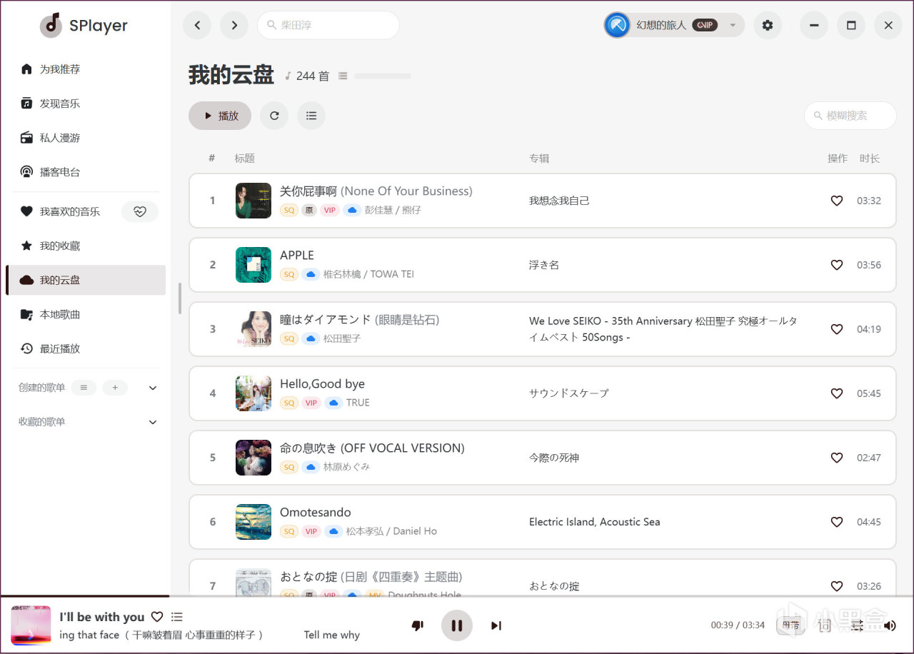 SPlayer 完整支持音乐云盘功能: