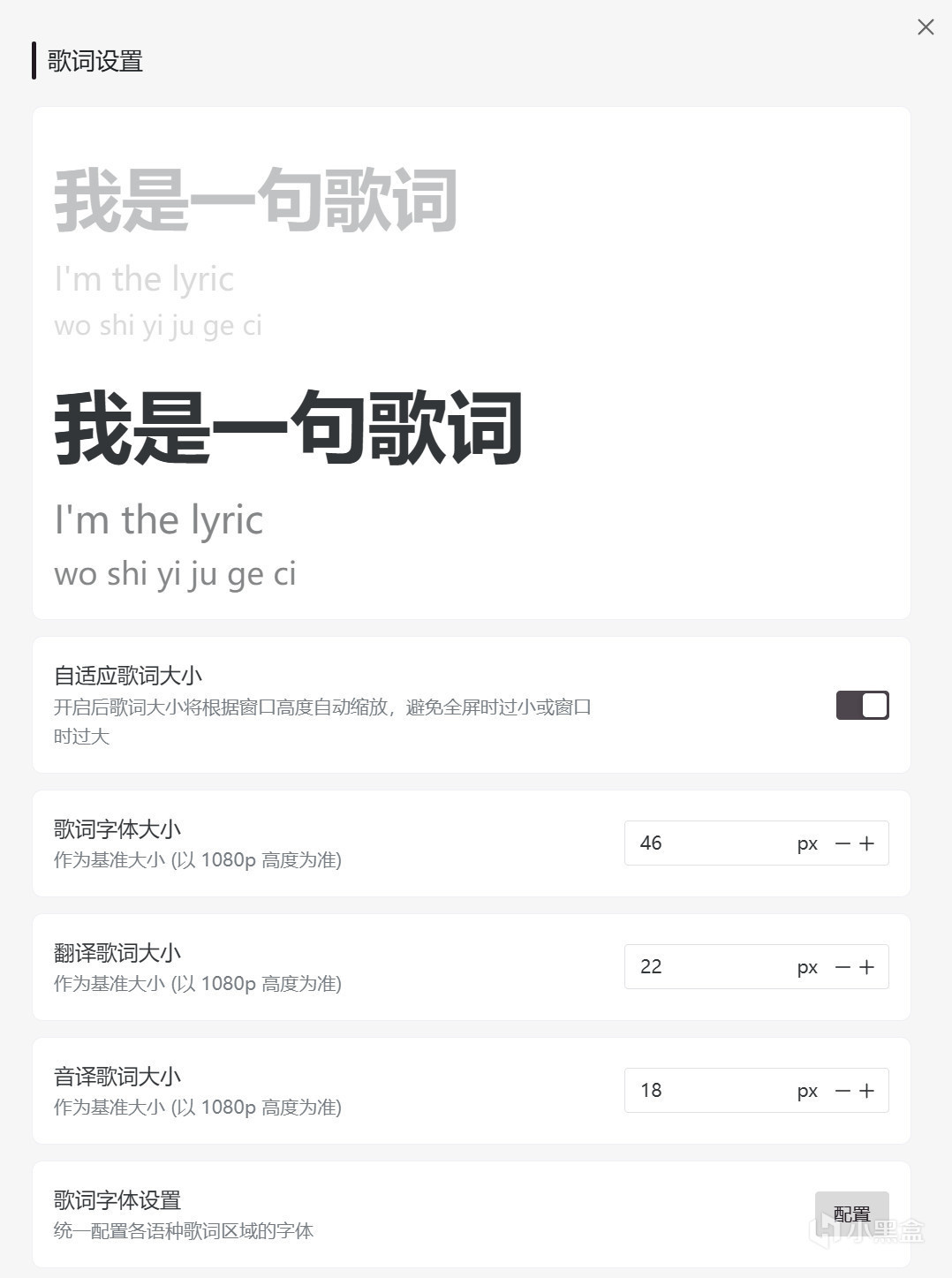 歌词大小