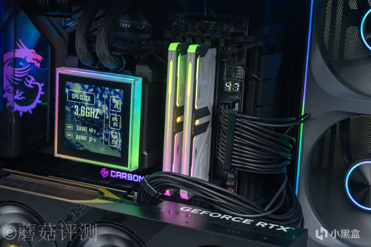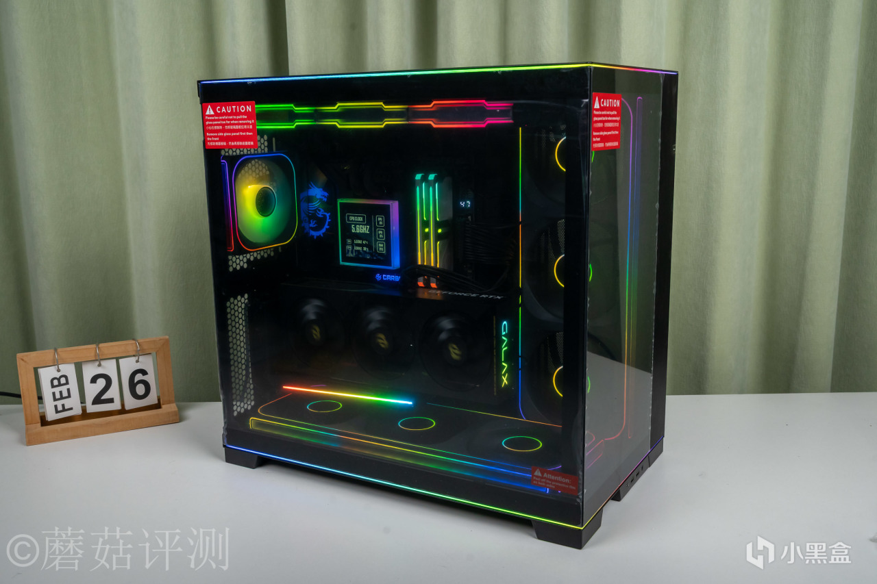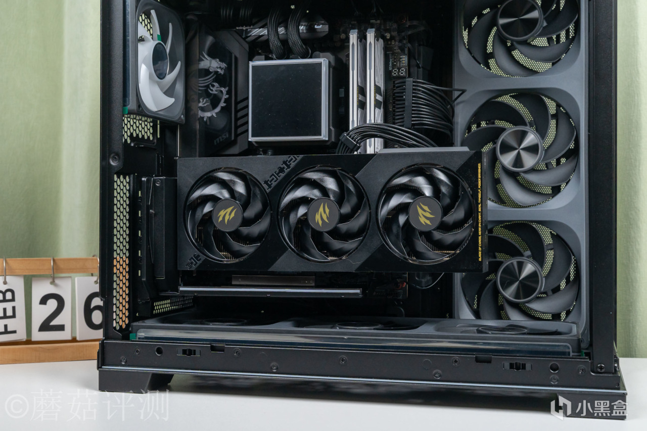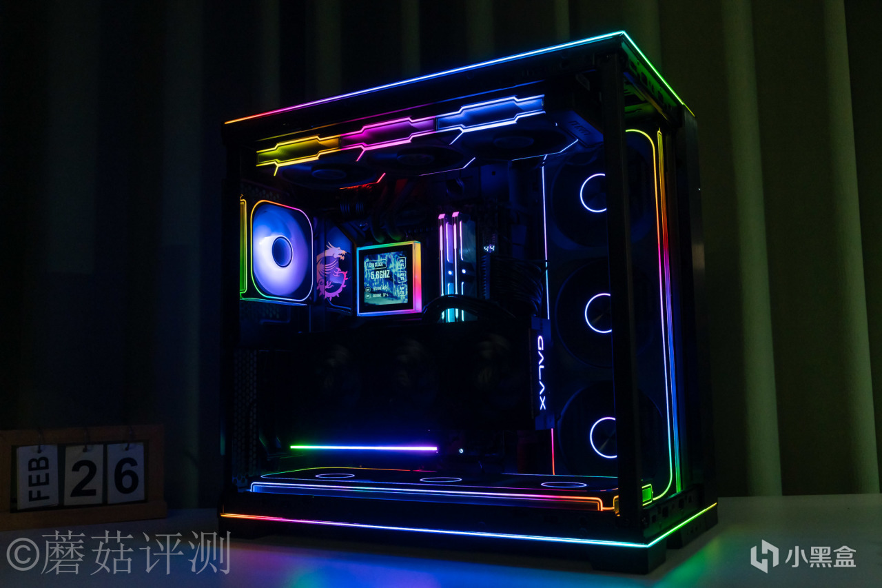 ▼機箱是聯力的包豪斯O11D EVO RGB版,這款機箱的側面、底部、頂部均支持3*140mm規格的機箱風扇,蘑菇在側面和底部安裝了兩把喬思伯的ZA420模組扇,反葉的,可以提供充足的進風。