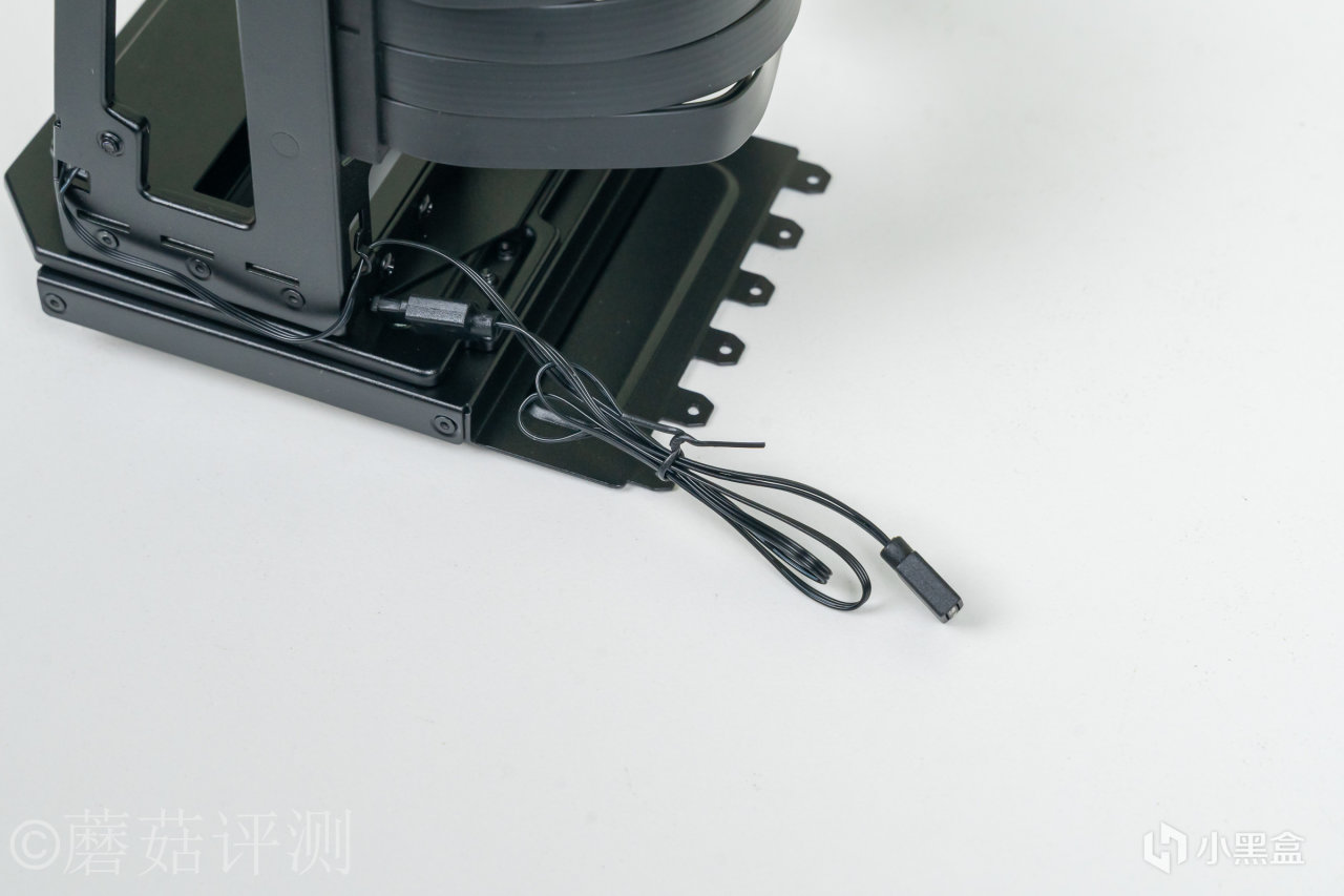 ▼顯卡支架支撐顯卡的橫向支架的前部,還有一條乳白色的RGB燈帶,支持ARGB燈效,支持主板同步。