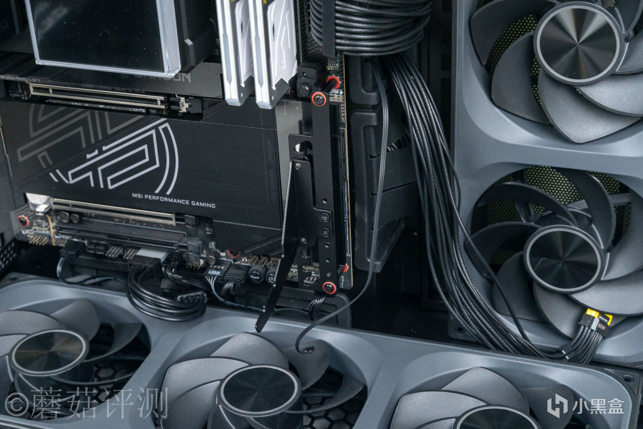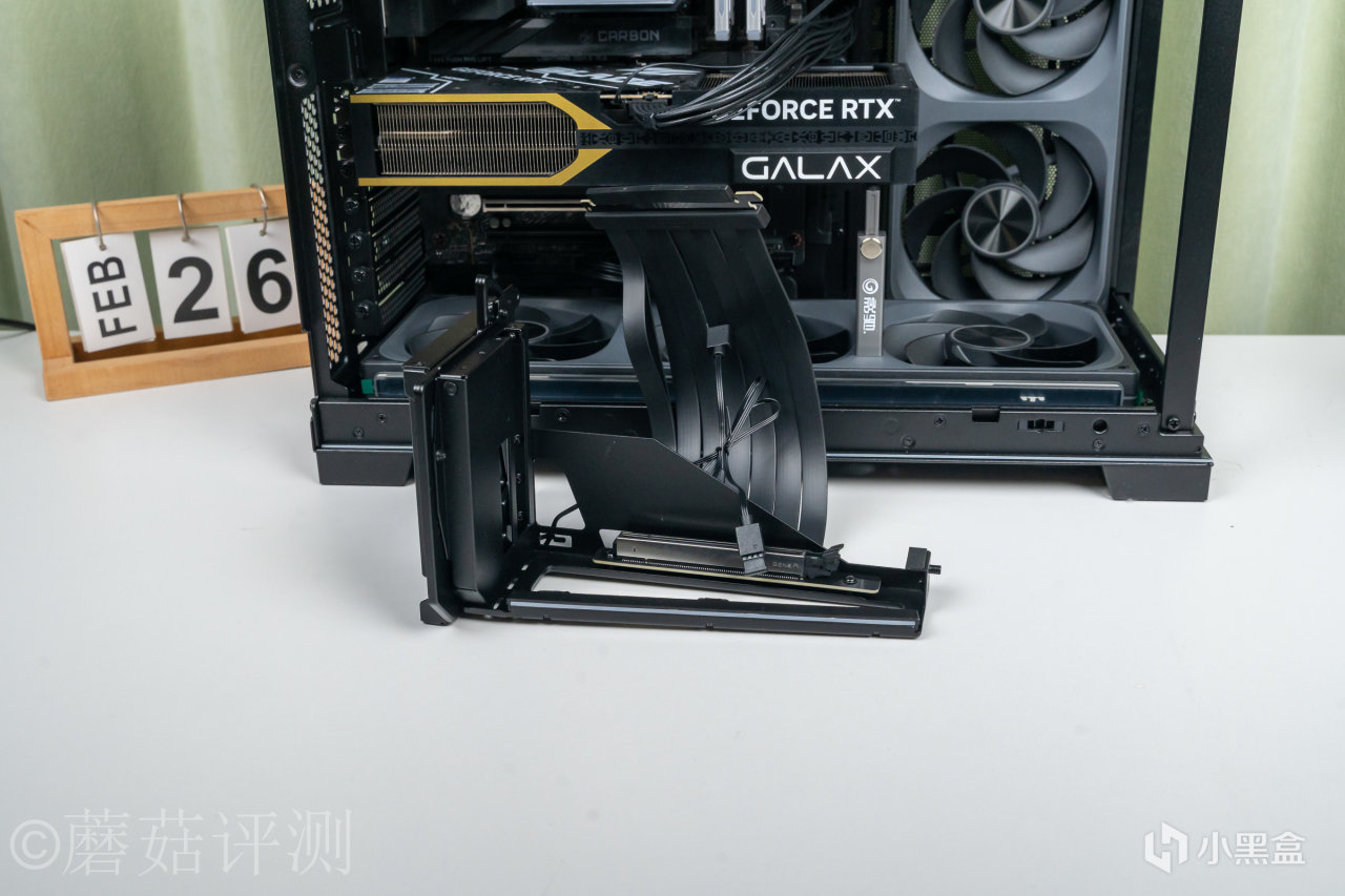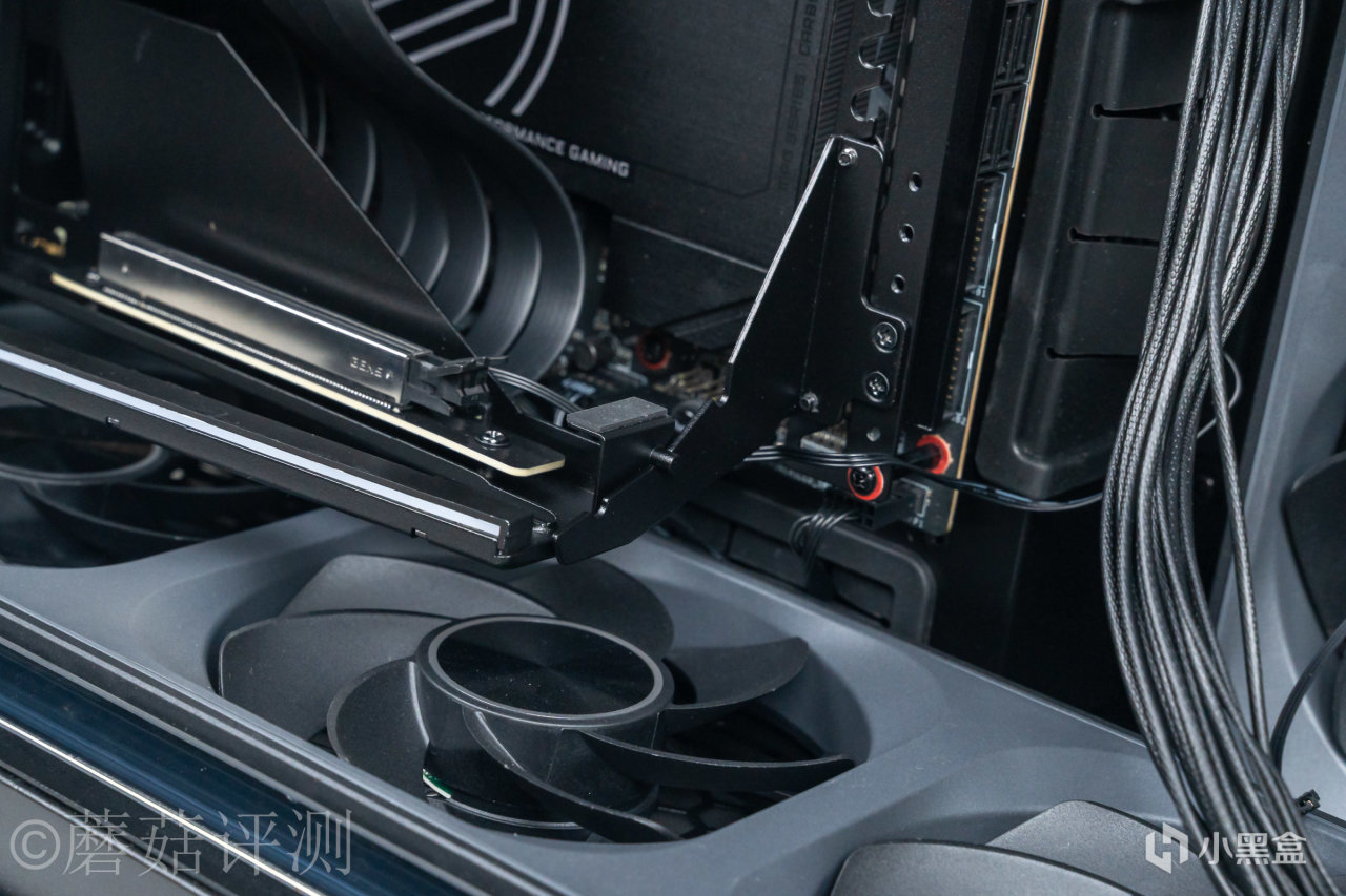 配合顯卡支架,可以輕鬆把之前默認只能橫置安裝的顯卡給豎直安裝,可以更好的展示顯卡整體顏值的同時,在面對一些豎直風道的時候,可以更加通常的讓氣流通過,有助於機箱內部其他硬件散熱。