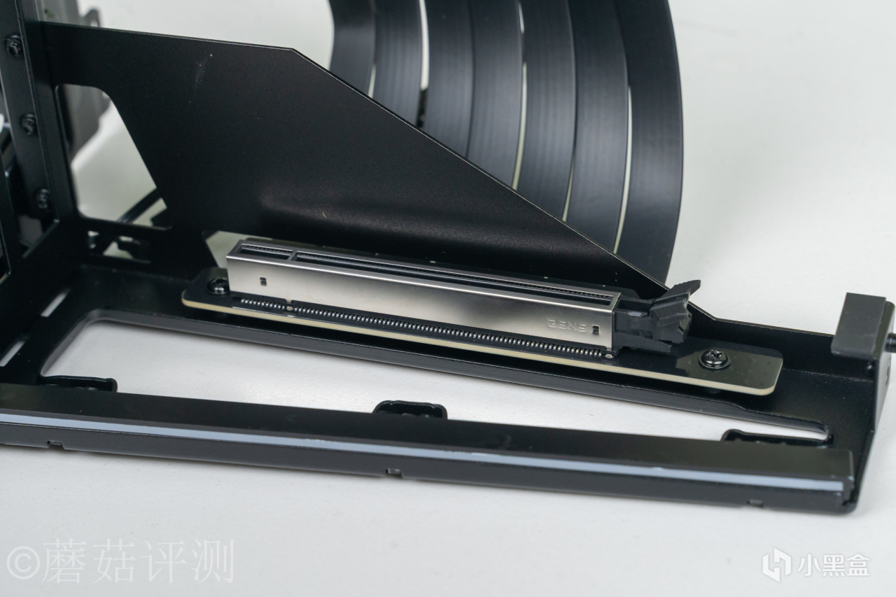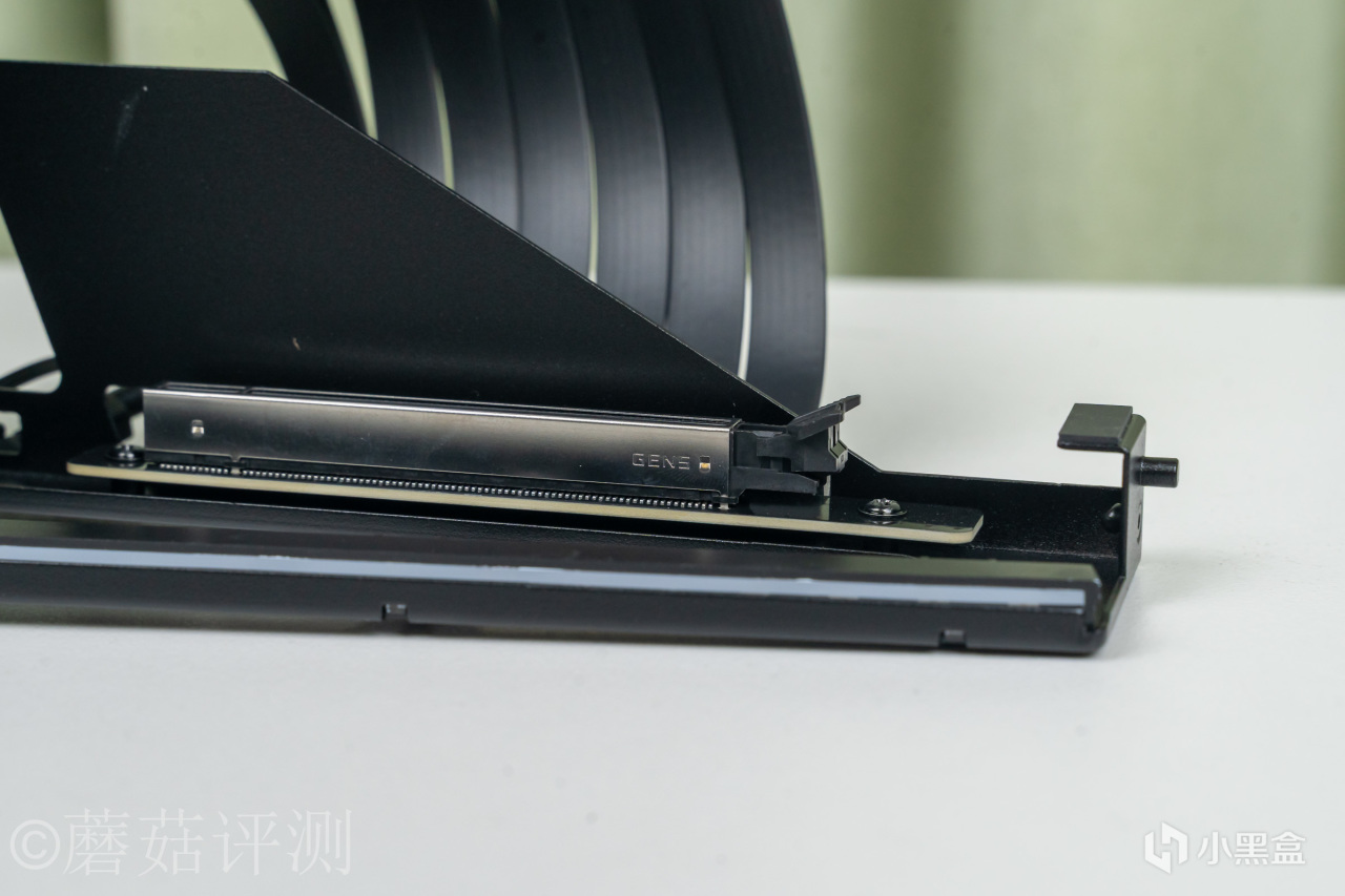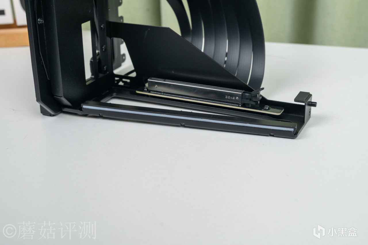 ▼金屬包裹件的尾部,還有Gen5的字樣,這款顯卡支架原裝PCIe延長線是PCIe 5.0的,即使應付一些旗艦級的顯卡,也不會有什麼問題。