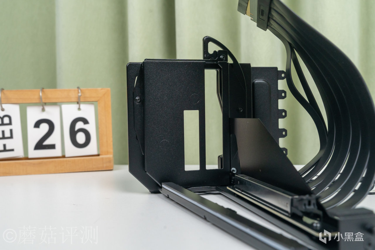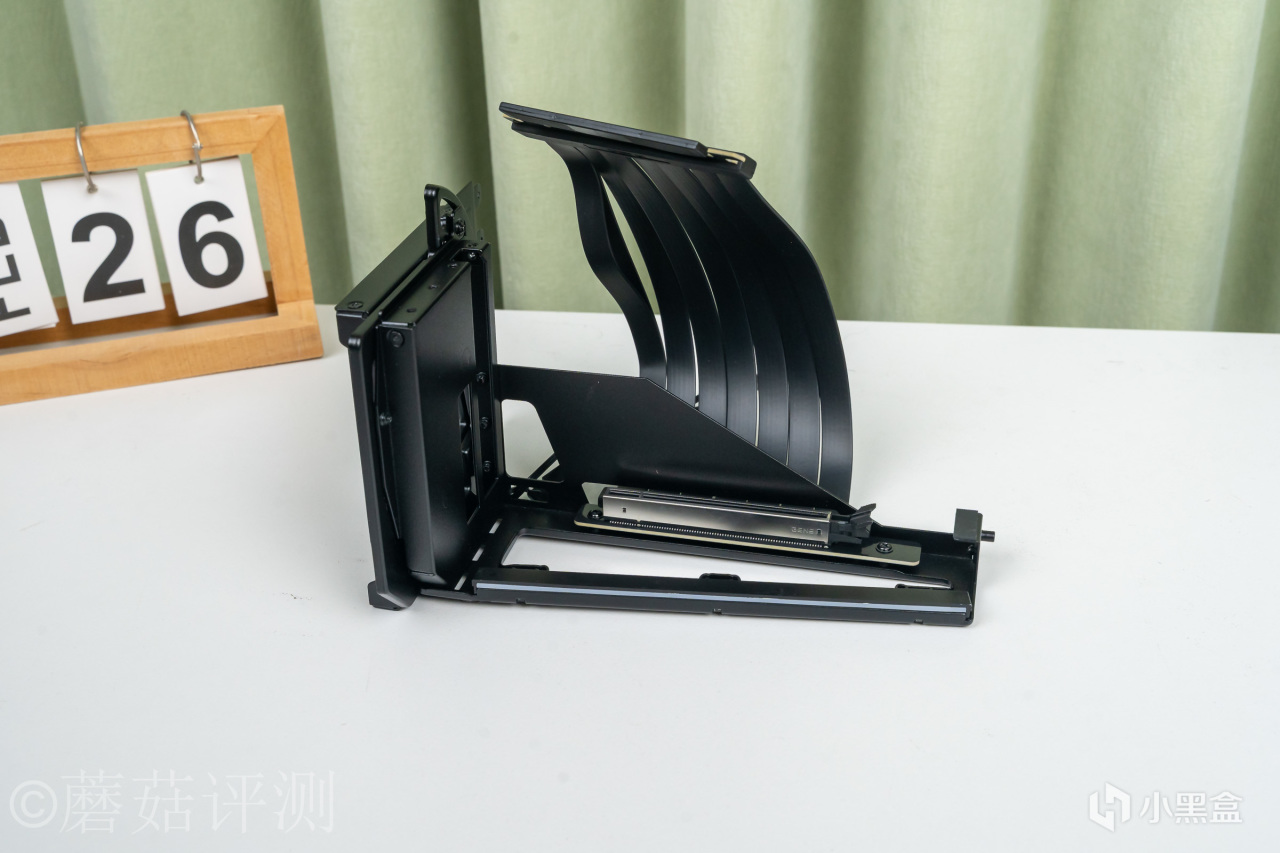 ▼這款顯卡支架主體很完整,顯卡支架的固定支架、顯卡的支撐支架以及延長的PCIe線,均預固定到顯卡支架的主體上。