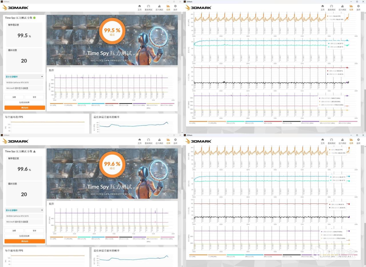 ▼最後跑個3Dmark的壓力測試,TS模式,幀數穩定率差不多,顯卡核心溫度方面,橫裝顯卡核心64.6℃,豎裝顯卡核心66.2℃,顯卡豎裝略高一點。