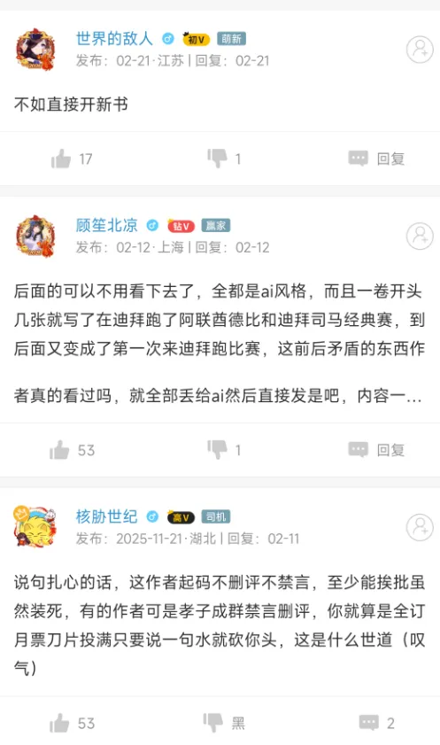 總之呢,就是因爲聲量實在是太大了,而且牽扯到了作者的底層創作熱情的問題,在“高質量AI不好管理”之後,網站官方也是和作者代表線下交流了。