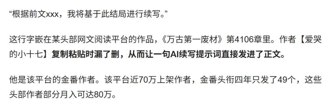 (就在前幾天,某平臺一位月入八十萬的頭部作者被扒出提示詞沒刪乾淨)