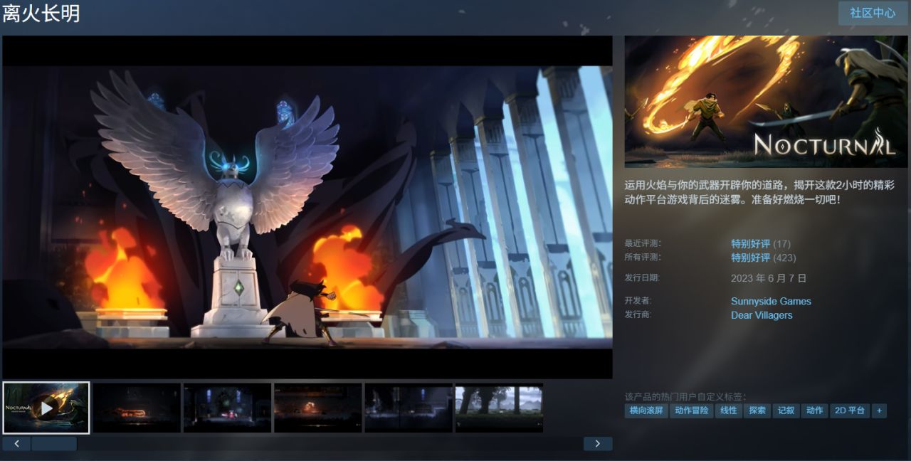 《離火長明》(Nocturnal)是一款橫版 2D 動作平臺遊戲。你將扮演戰士阿爾德希爾,手持火焰之劍,在被迷霧吞噬的島嶼上展開探索與戰鬥。遊戲核心特色在於「火焰機制」——不僅可以點燃場景、觸發機關,還能剋制敵人。搭配緊湊的關卡設計與技能成長系統,帶來約 2~3 小時的高質量冒險體驗,小而精緻,流程不長但很有味道。