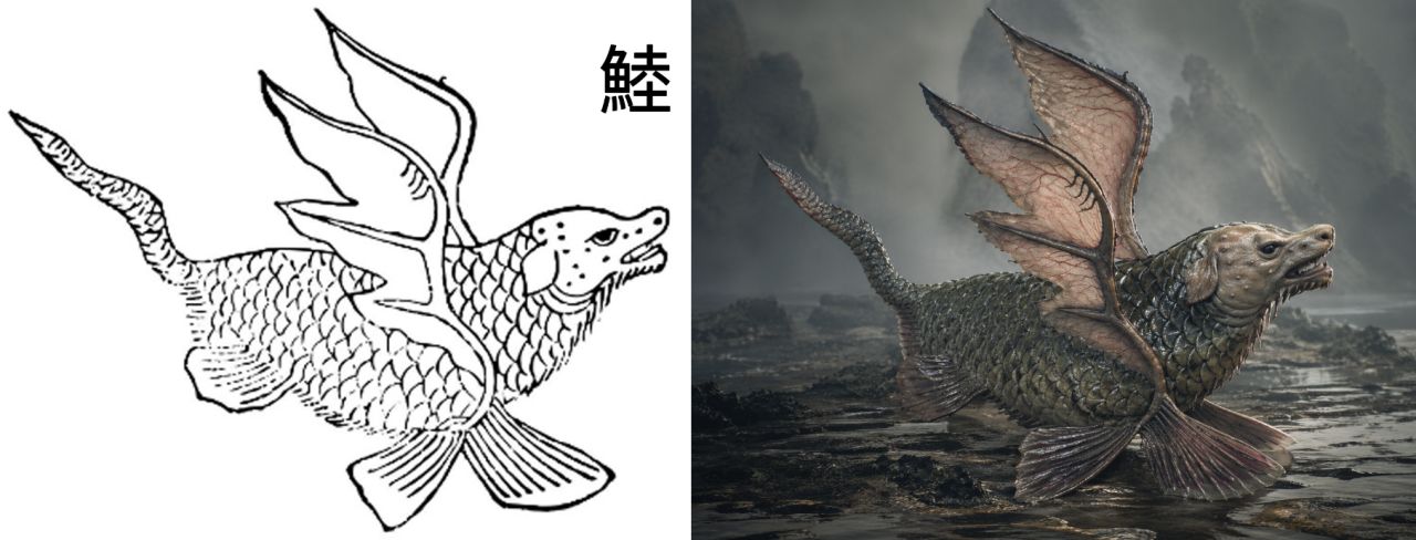 鯥:有翅膀的鱼,牛的脑袋,会飞,但是原图却没有牛的犄角。