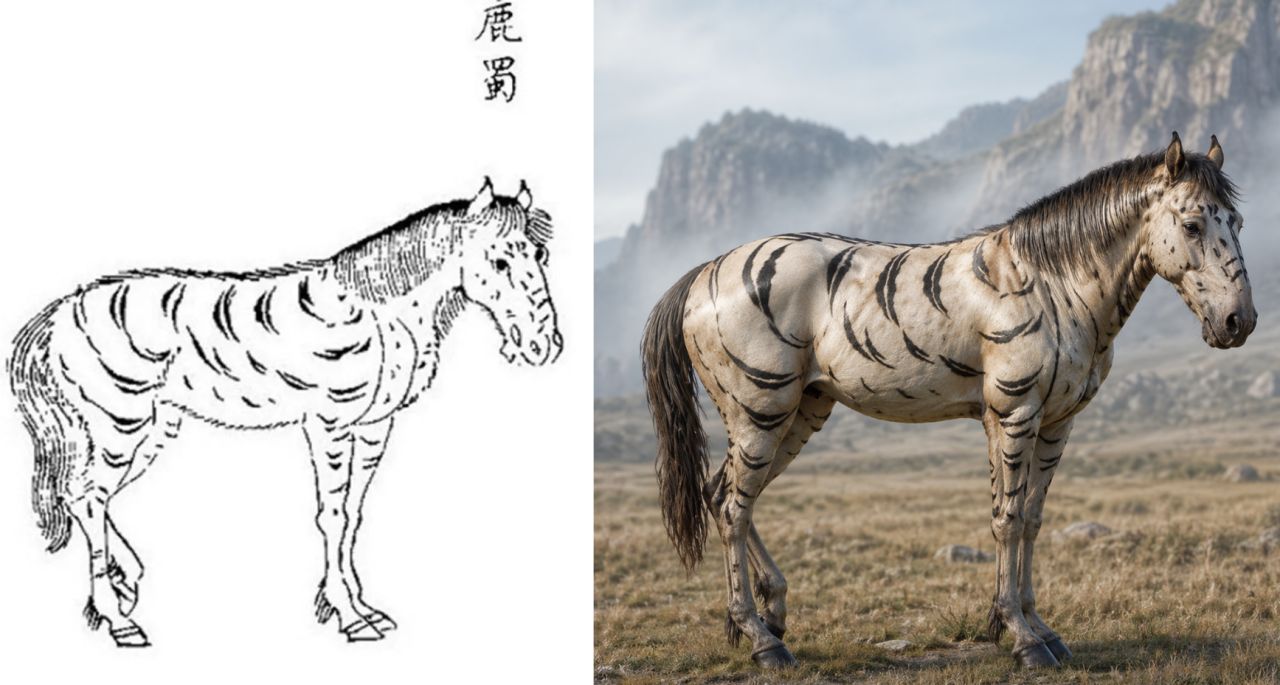 鹿蜀:这个看上去算是最正常的了,因为有种说法鹿蜀就是斑马。