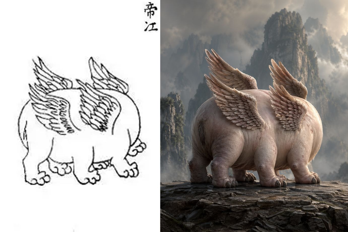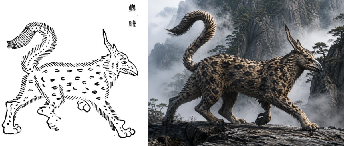 这两天GPT Images 2.0的效果着实有点惊艳了,所以我去搜集了一些山海经中古代原始的图,让GPT给生成一比一真实的效果,大家觉得怎么样呢?特别是最后那个,虽然是神兽,但是也太搞笑了吧,首先是: