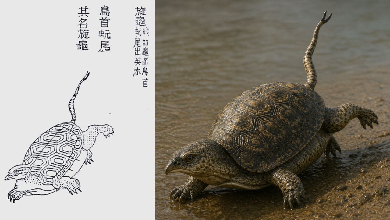 旋龟:鸟首蛇尾的乌龟,就是完全照搬古书中的图,比例就非常失衡了!
