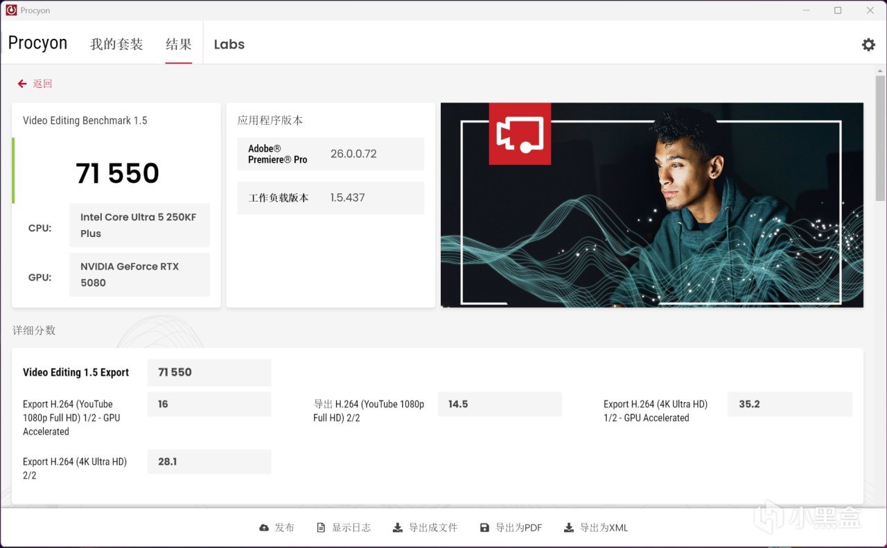 在上述Procyon照片編輯基準中,銳龍5 9600X憑藉着出色的單核性能,能領先Ultra 5 250KF Plus達到8%幅度,而在視頻編輯導出環節,本身編碼就一定程度依賴RTX 5080,加上軟件對於多核優化有限,導致兩者幾乎是一致水平,就連上期測試的銳龍7 9700X和Ultra 270K Plus也幾乎同樣分數。