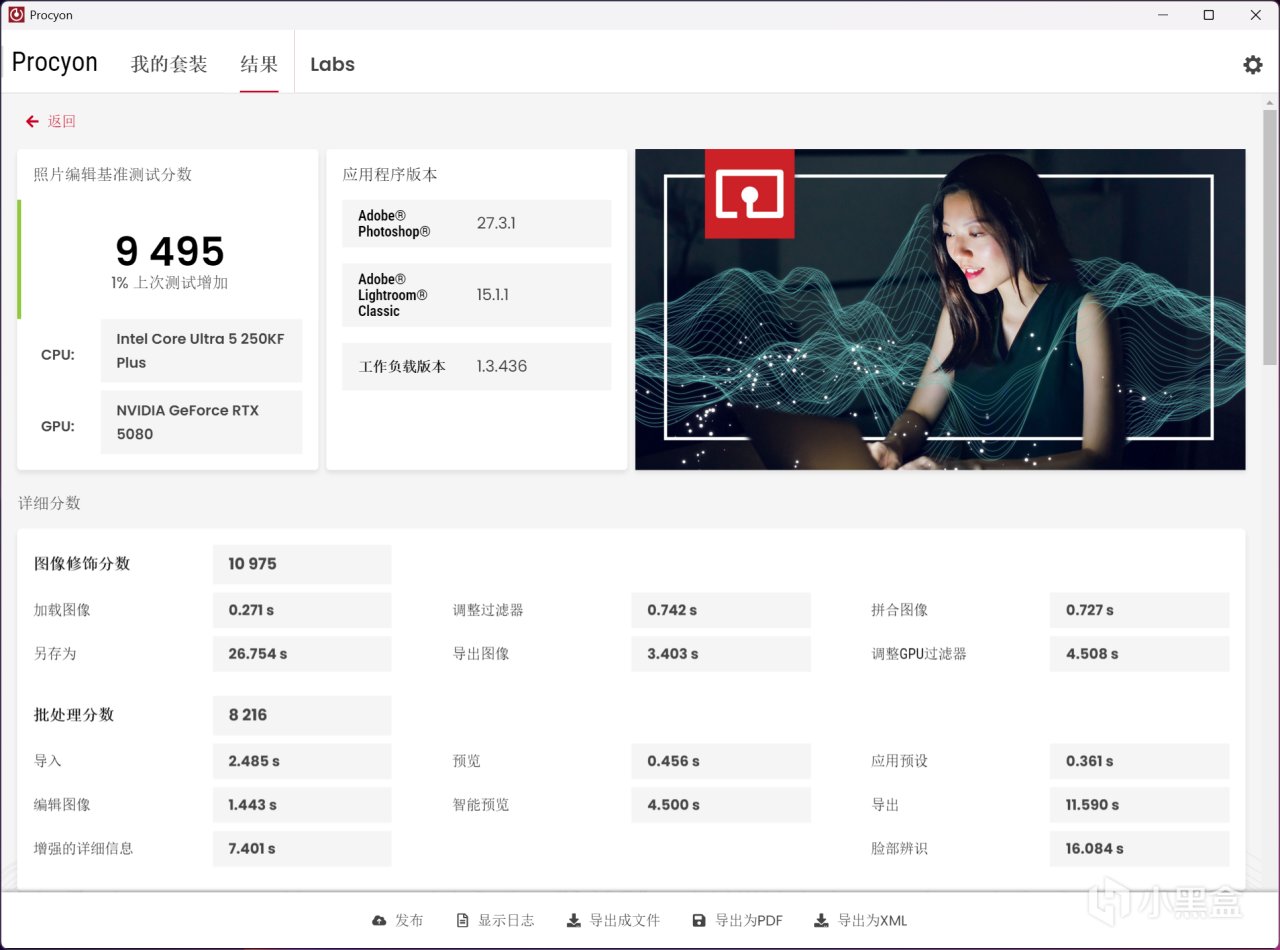 由於Ultra 5 250KF Plus規格升級到18核,在絕對多核性能方面肯定是領先,但回到實際需求更大的內容創作類的生產力,比如Adobe Photoshop、Adobe Lightroom和Adobe Premiere,那多核的優勢就未必是關鍵了。