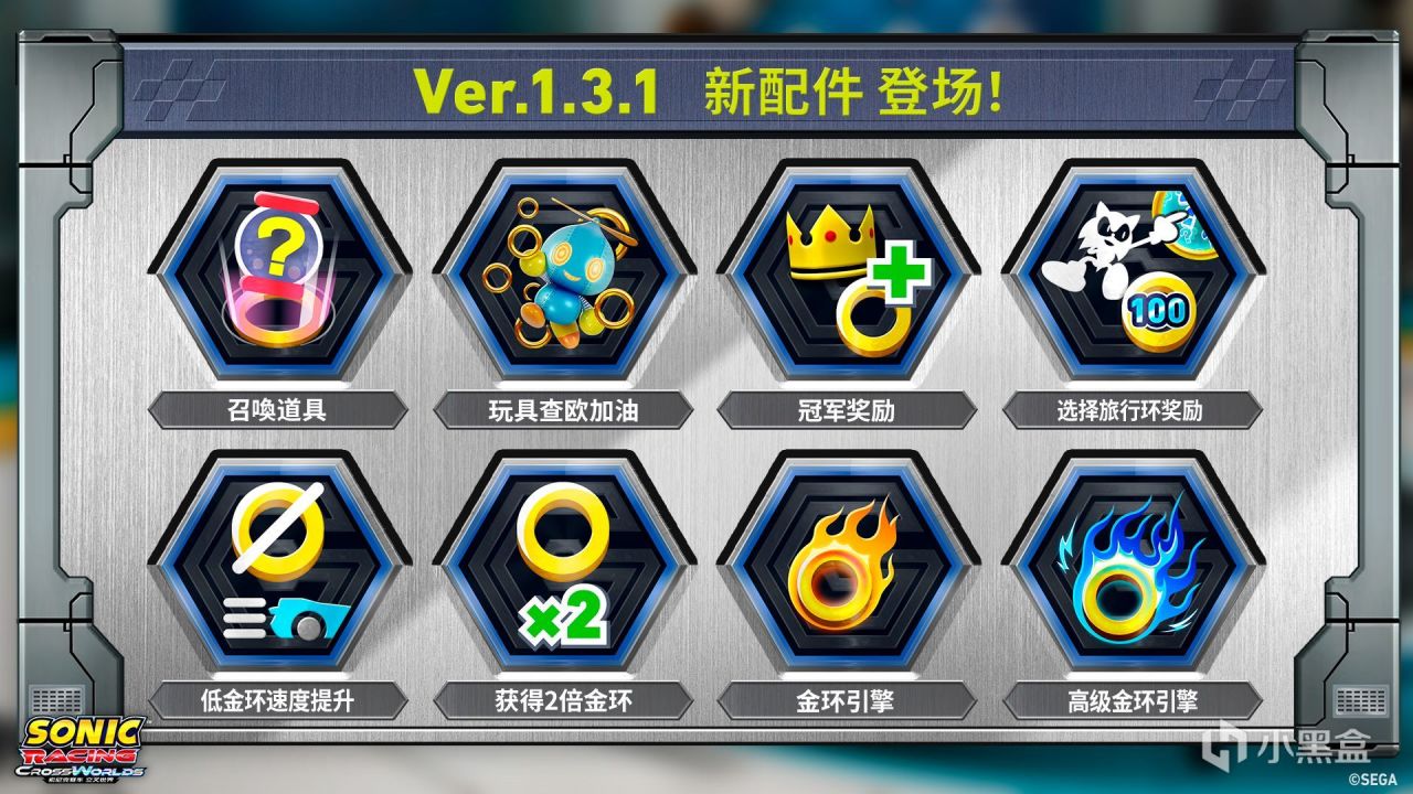本次更新不仅追加了8种新配件及8首世嘉竞速旧作歌曲,还将上线各类联动贴纸等。此外,通过调整游戏平衡与现存配件,对战环境全面进化,使游玩体验更具有竞速战略性。
