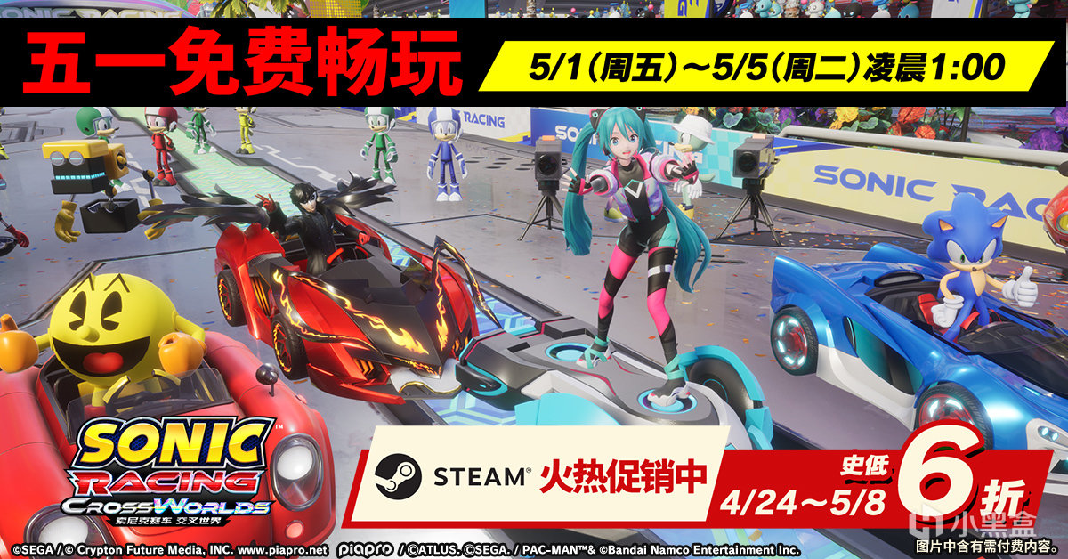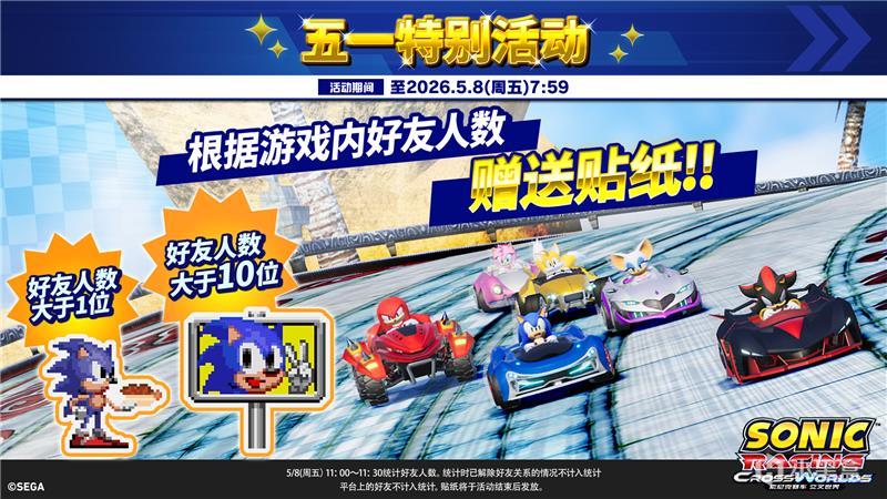 好评发售中的世嘉游戏《索尼克赛车 交叉世界》现正于PlayStation™ Store及Steam平台举办 “黄金周大促”活动,PlayStation®5及Steam版六折盛惠回馈玩家!PlayStation™ Store促销将持续至2026年5月6日,Steam促销将持续至5月8日。