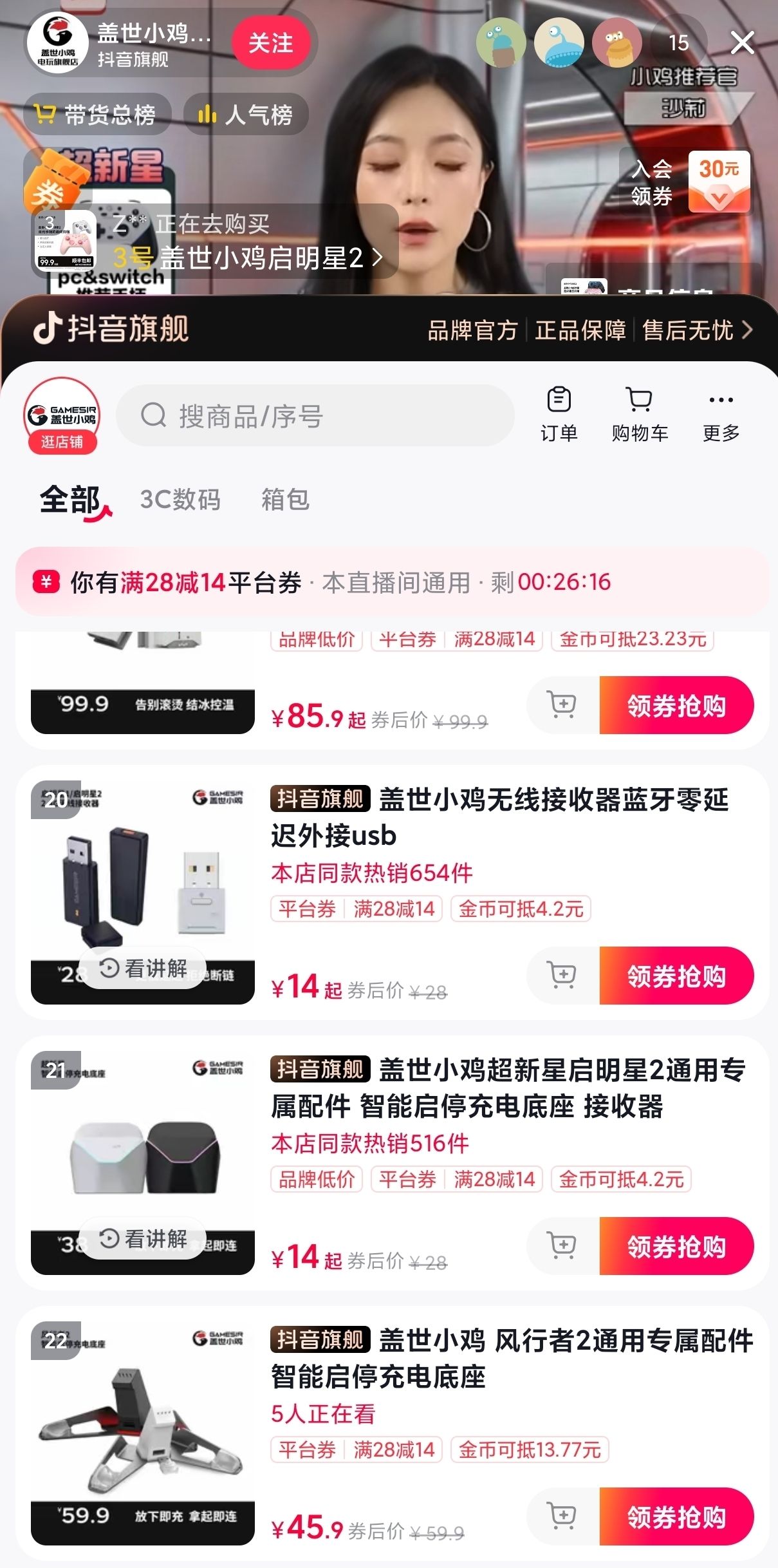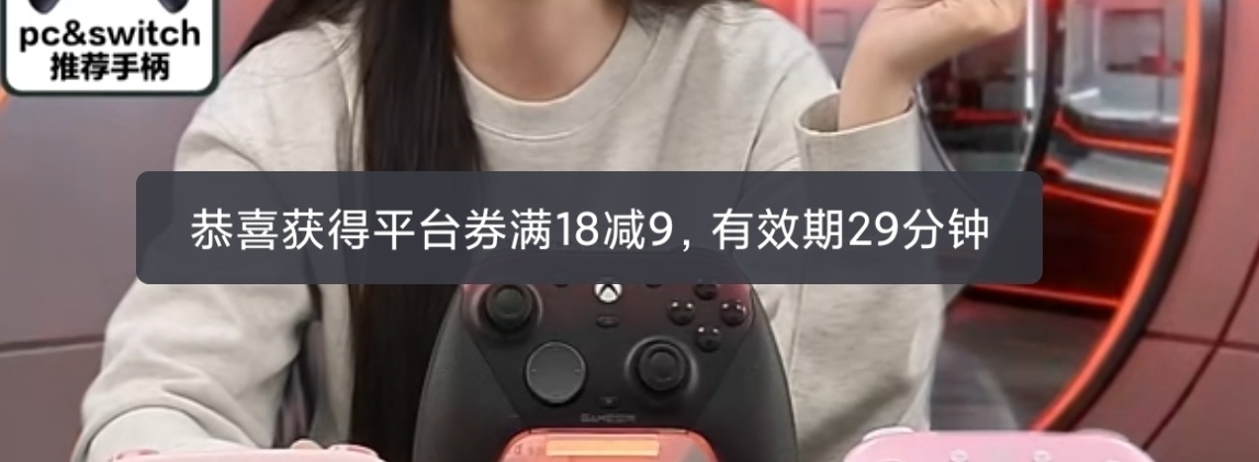 (ps:如果你想买其他牌子质量更好、价格更贵的手柄,建议去对应的官方直播间内蹲一蹲,官方在左上角会发一些对应的特定热销产品的红包)