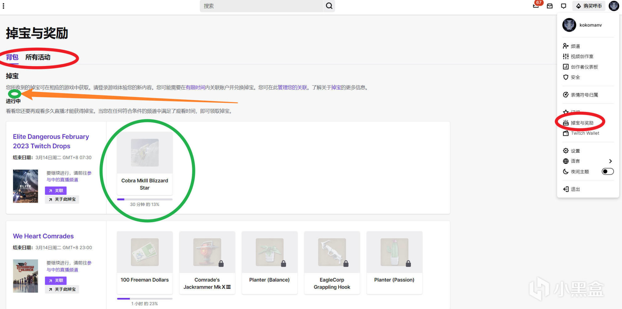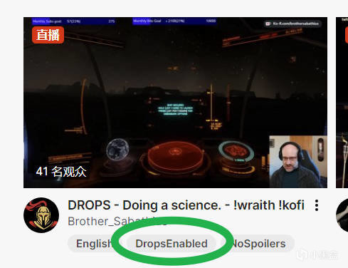 點擊頭像下方的掉寶界面,活動開始後可以在“所有活動”中找到命運2分區,或者直接去國外知名主播的直播間,可以獲得名片的直播間會有“DROP”字樣,進去後右上角可以看到“DROP”橫幅,在掉寶界面中還能看到獲得獎勵的進度(一般是看了多少分鐘這個分區中的直播)
