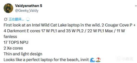 兄弟們,英特爾剛發完 Wildcat Lake 處理器才一週,第一臺搭載這顆芯片的公版參考設計筆記本就被人拍到了。