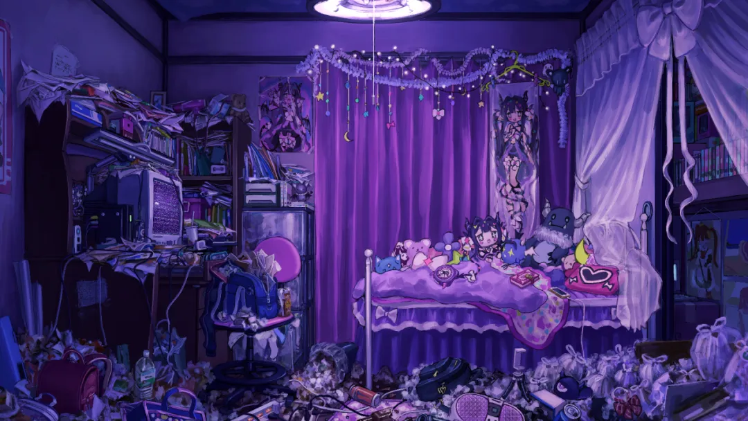 后来,她爱上了一款来自2003年的PC游戏《处刑天使 † 基露提那》里的角色,电波小恶魔「晕晕」,她天天呢喃着晕晕的经典口头禅“Rim de Lacent”,据说意思是“前往二次元吧”“即使逃避现实也没关系”,我反正听不懂。