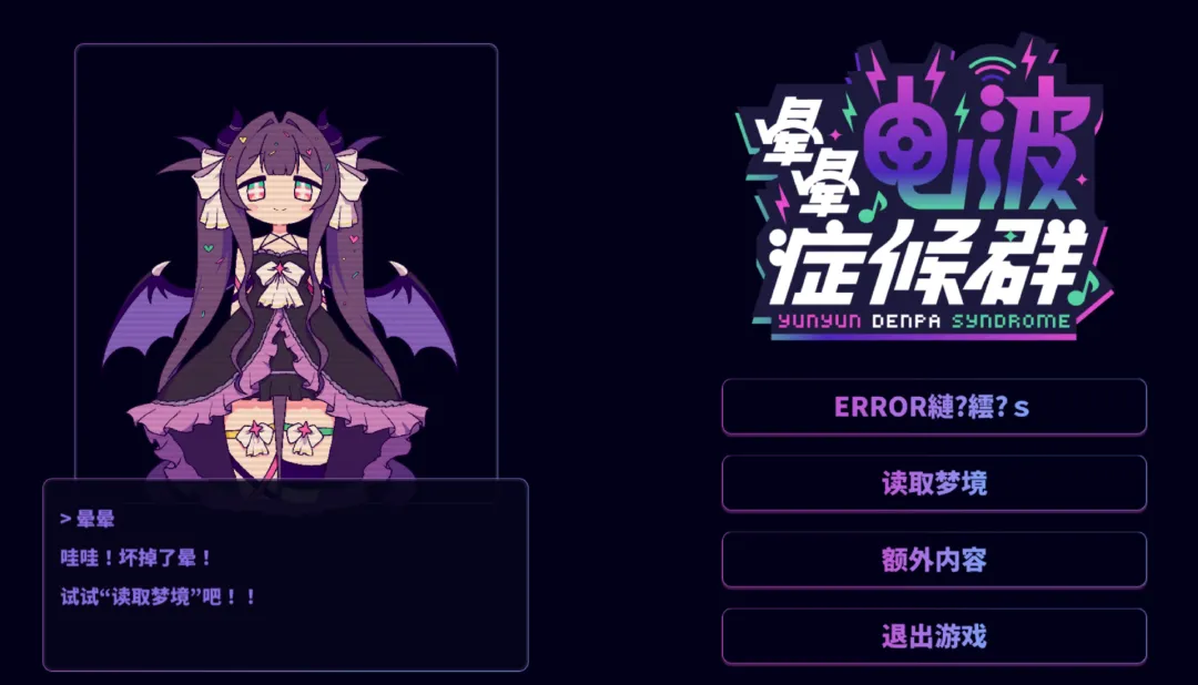 (晕晕会在主界面与玩家对话,而且右边的“开始游戏”也是乱码,电波味太冲了)