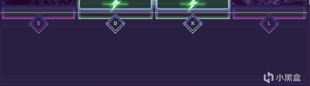本作的音游玩法对新手很友好:经典的4Key下落式键位,没有血量,判定宽松,长条也没有尾判,只是在4key基础上加入了需要连打的黄色长条来增强互动感。整体难度不高,就算你是第一次接触音游的新人,也可以把它拿来当作4K音游的练习软件。