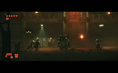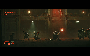 光靠剧情与美术,很难支撑起《REPLACED》的完整体验。因此,游戏加入了大量的横版战斗与跳跳乐玩法。差强人意的战斗与平台跳跃让本作成为了极度偏科的美术生。战斗设计的初衷和机制很好,黄色攻击格挡、红色攻击闪避,盾兵需要先破盾,平A蓄能后开枪秒杀。没有RPG数值元素,纯粹的技术与手法操作。