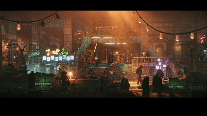 没有《赛博朋克:2077》里标志性高楼大厦、车水马龙的繁华街道,反而呈现一个褪去繁华滤镜的废土赛博世界。贫民窟、荒野和下水道才是主角的刷新点。宏大的背景下,独自前行的主角,自带一种孤勇感。虽然贫民窟破败,但全是暖色调;虽然高塔繁华安全,但全是冷色调。冷暖色调的对比,奠定了主题的走向。