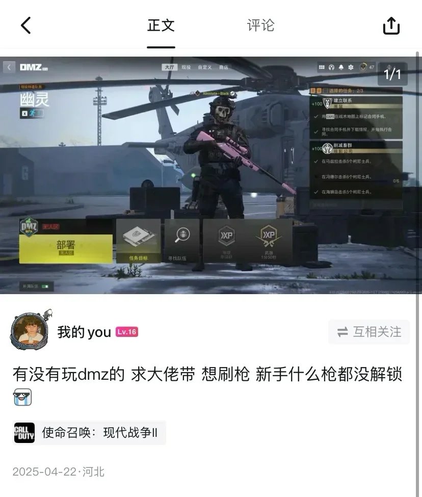 平常的一天裏,我隨意地刷着盒,希望能找到一個志同道合的朋友,一起勇闖dmz這片對我來說完全未知的世界。而這一篇帖子,讓命運的齒輪就此開始轉動。