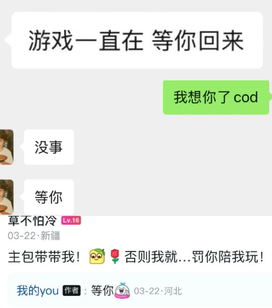 那段時間無比寂寞難熬,因爲他不在,我也沒有玩COD的動力了。爲了找到一個能夠支撐自己的支點,我開始嘗試其他遊戲,同時因爲學業壓力和其他各種各樣的原因,我和他有接近三個月沒有聯繫,但只要開啓話題,無論是詢問對方的近況,吐槽小組作業,還是隻聊聊遊戲,我們的關係從未因爲時間而改變,一如既往。