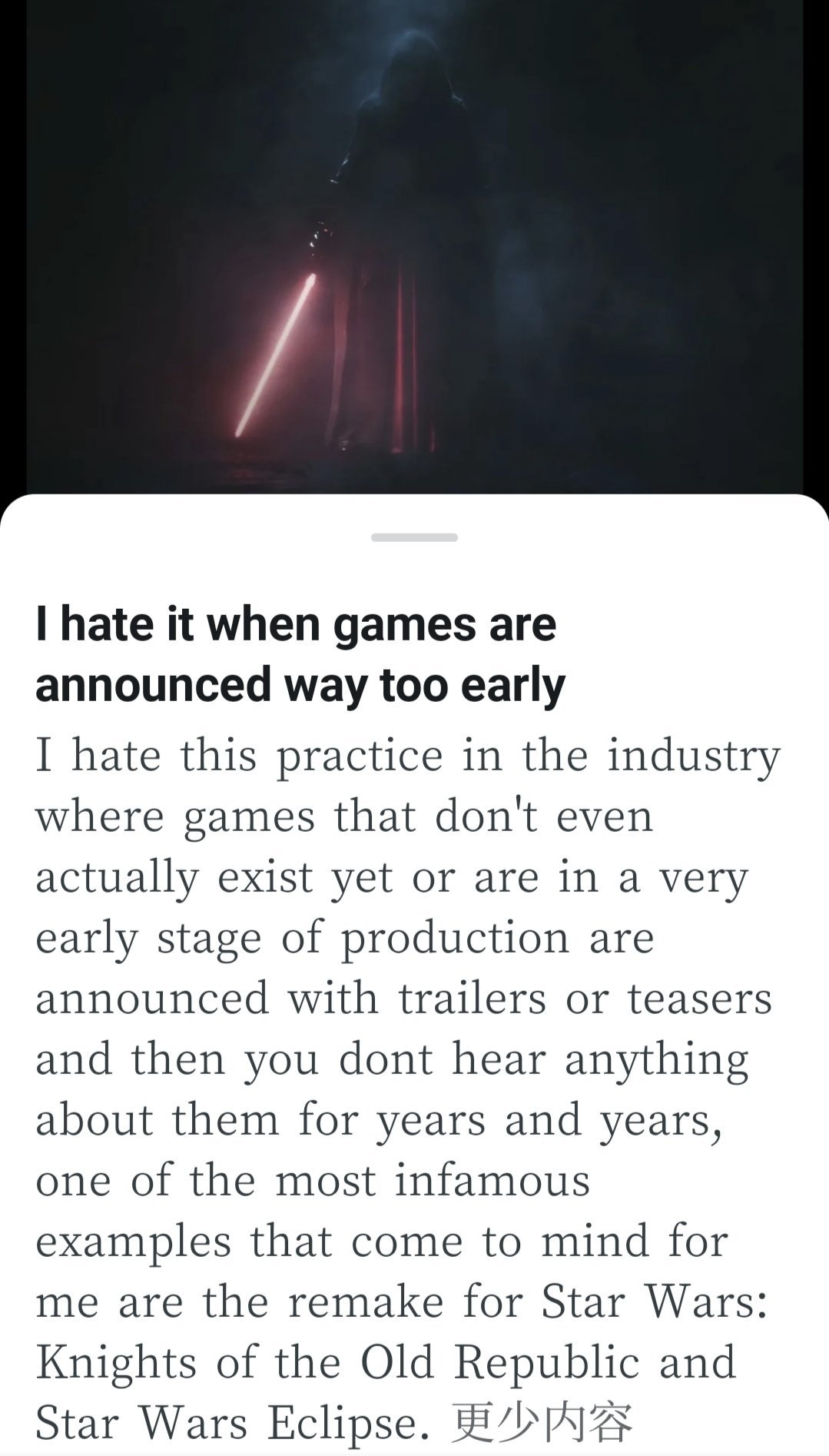 帖子中提到的幾個項目,是玩家吐槽的“常客”:《星球大戰:舊共和國武士 重製版》:2021年正式公佈,最初由Aspyr負責,後轉交Saber Interactive。至今已過去近5年,期間幾乎沒有實質更新,只有零星的“還在開發中”聲明。2026年3月,Saber首席創意官Tim Willits接受IGN採訪時確認“it is still in development”,但強調“當我們展示時,會確保讓大家真正興奮”。沒有新預告、沒有實機、沒有發售窗口。玩家戲稱這是“年度傳統”——每年出來說一句“還活着”,然後繼續沉默。開發過程據傳經歷過工作室變動和法律問題,典型“早公佈、慢推進”。