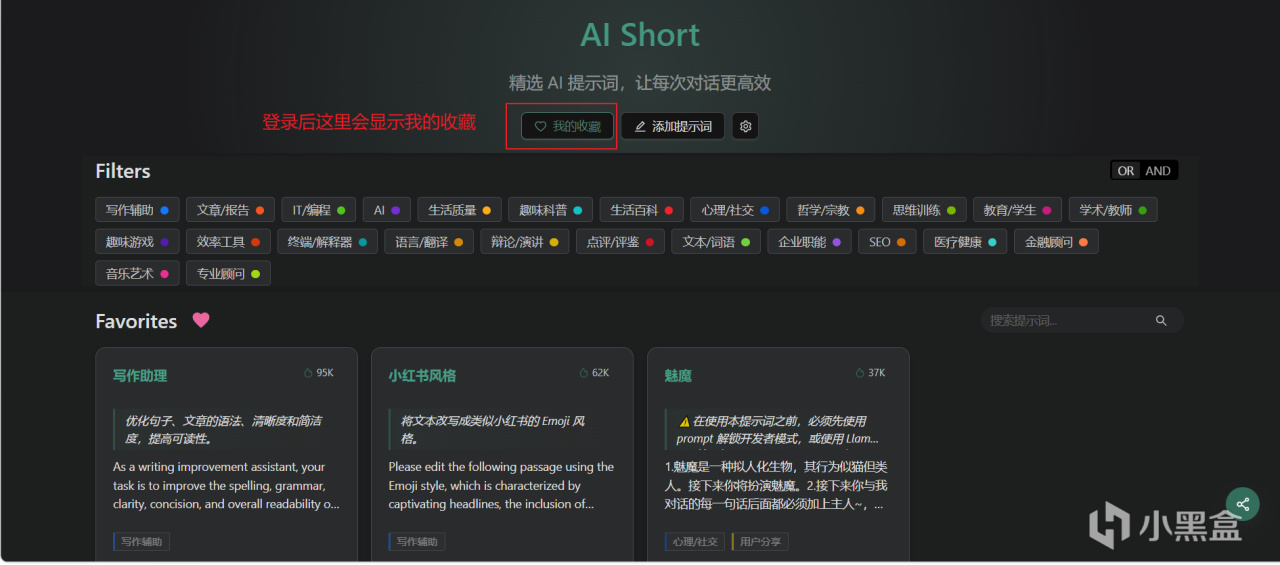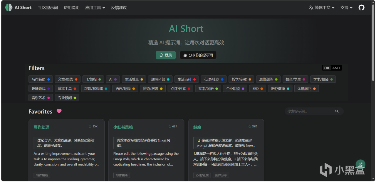 向盒友们推荐一个收录优质提示词的网站AI Short,它把各种常用场景的提示词进行了整理,分类清晰,还能一键复制,对新手非常友好。