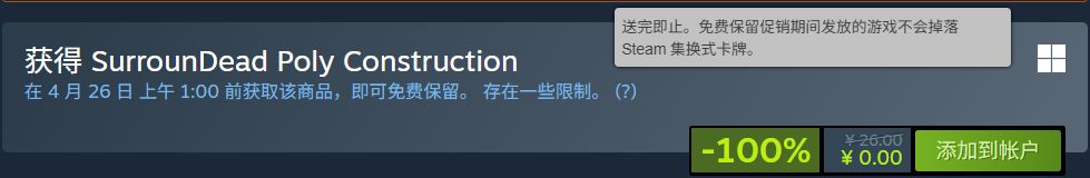 原价26元的SurrounDead Poly Construction,于北京时间04.26,1:00截止免费领取!