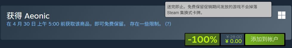 原28元的Aeonic,于北京时间04.28,1:00截止免费领取!